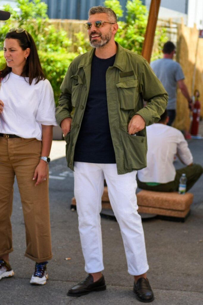 • ミリタリーとドレッシーの合わせは大人の鉄板コーデ